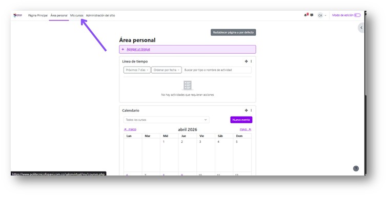 ✅ Para ingresar a tu curso, dirígete a la parte superior izquierda → “Mis cursos”.