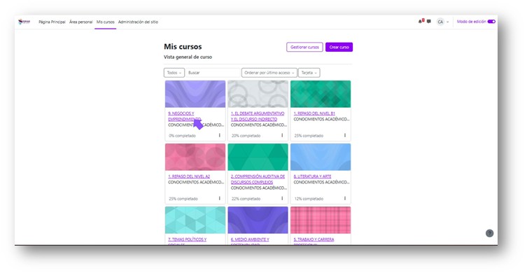 “Mis cursos” y unidades de aprendizaje