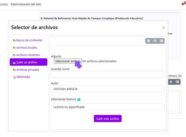 Ejemplo: Sesión 1 ▼ → Documento PDF, Video explicativo, Foro.